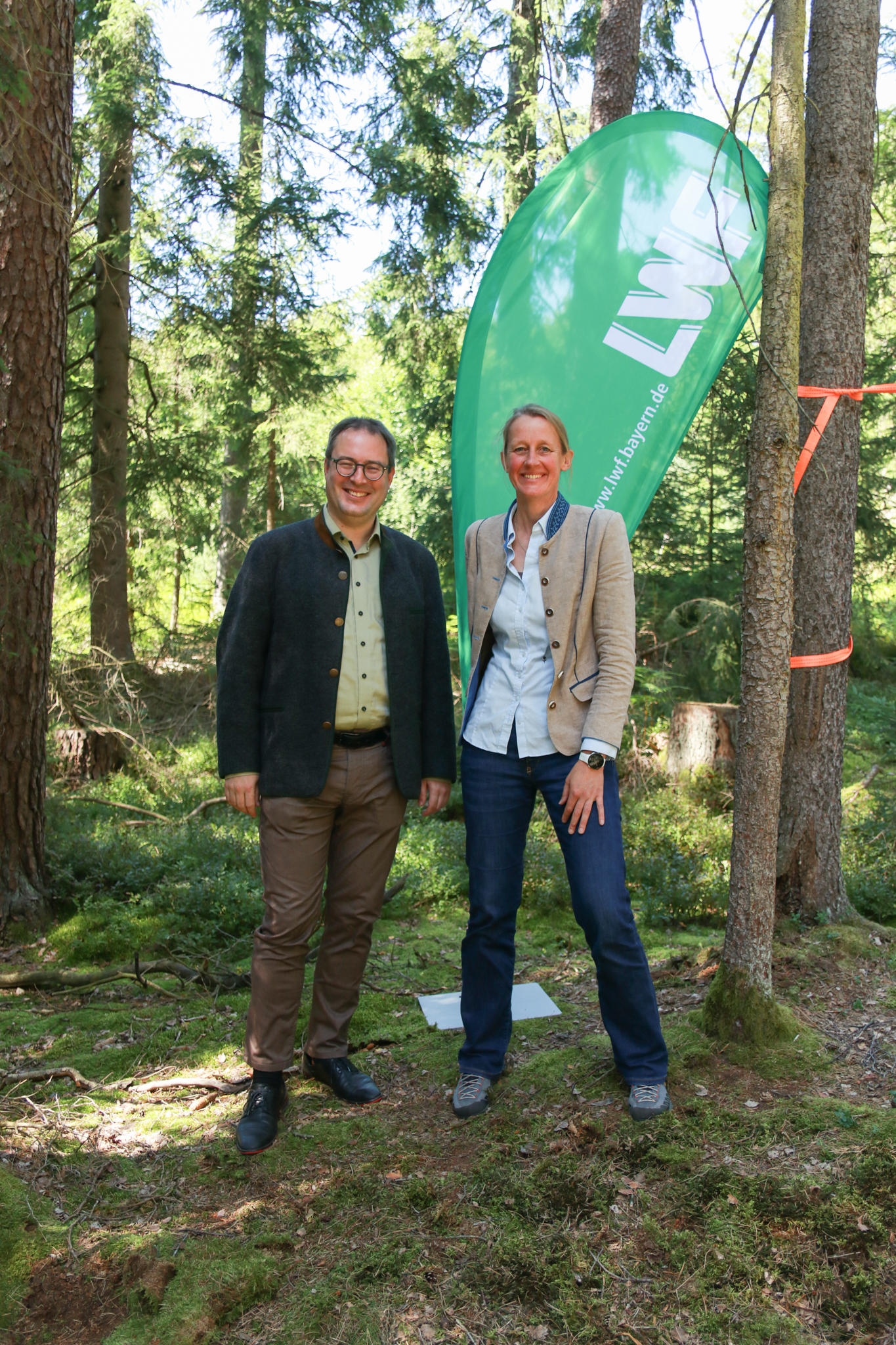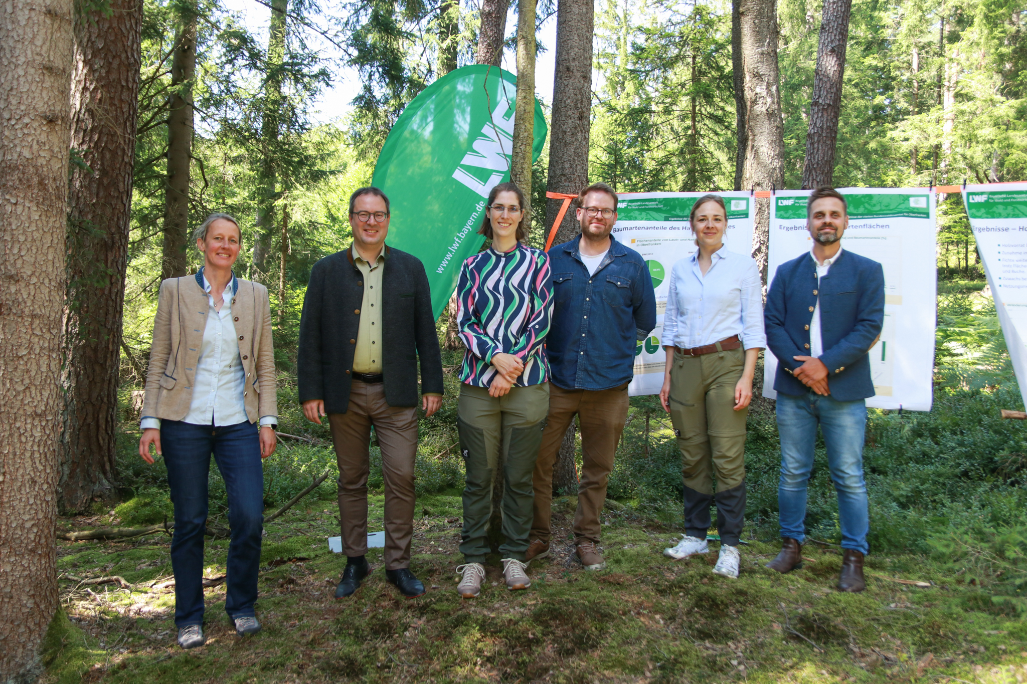Trotz Borkenkäfer, Hitze und Trockenheit halten sich in vielen Regionen Oberfrankens die negativen Entwicklungen in Grenzen. Über den gesamten Regierungsbezirk gesehen, werden die Wälder vielfältiger, naturnäher und weisen mehr Laubbäume auf. Das zeigen die regionalisierten Auswertungen der Bundeswaldinventur (BWI), die die Bayerische Landesanstalt für Wald und Forstwirtschaft (LWF) gemeinsam mit Regierungspräsident Florian Luderschmid in einem Waldstück bei Hummeltal vorgestellt hat.