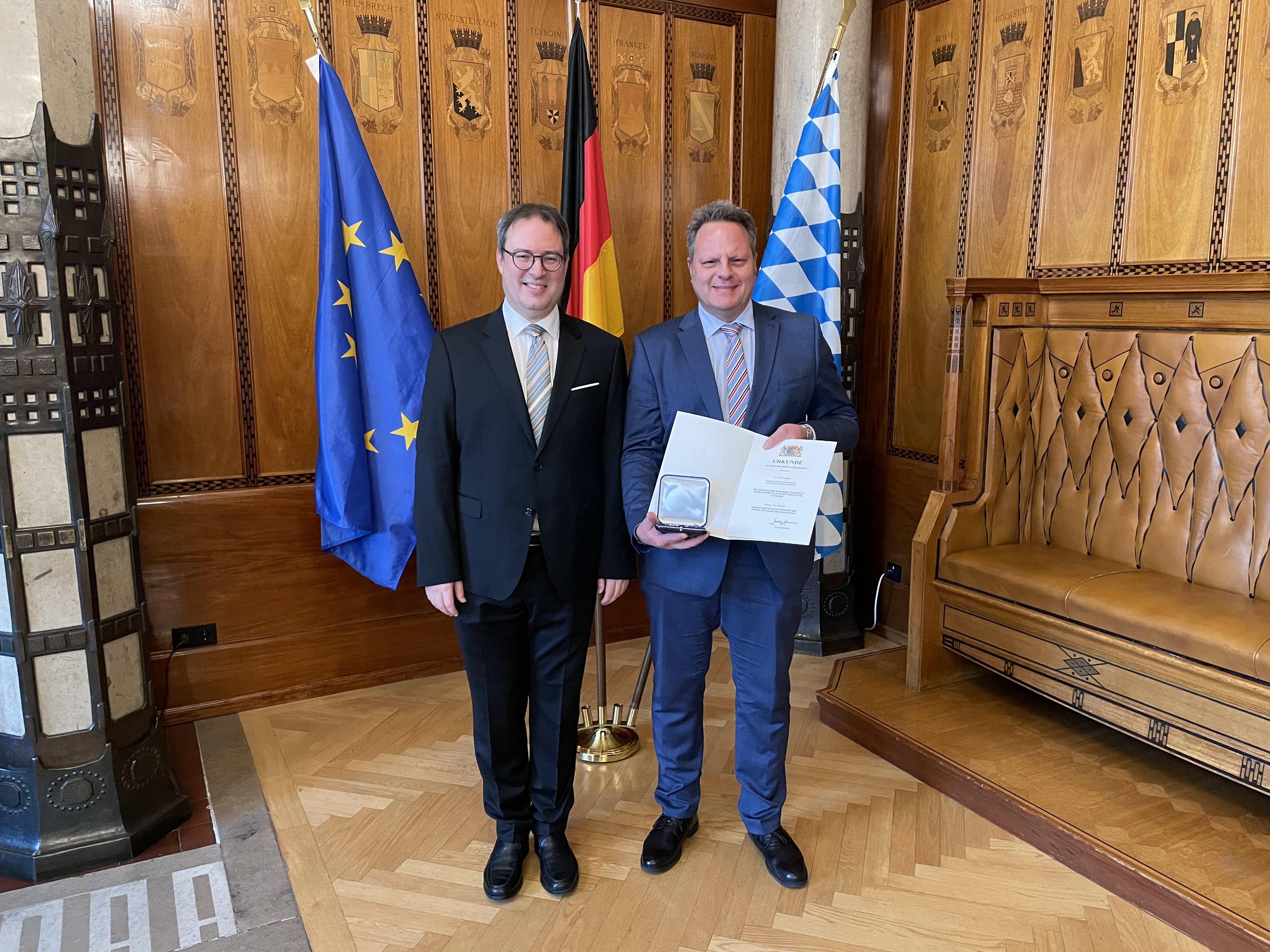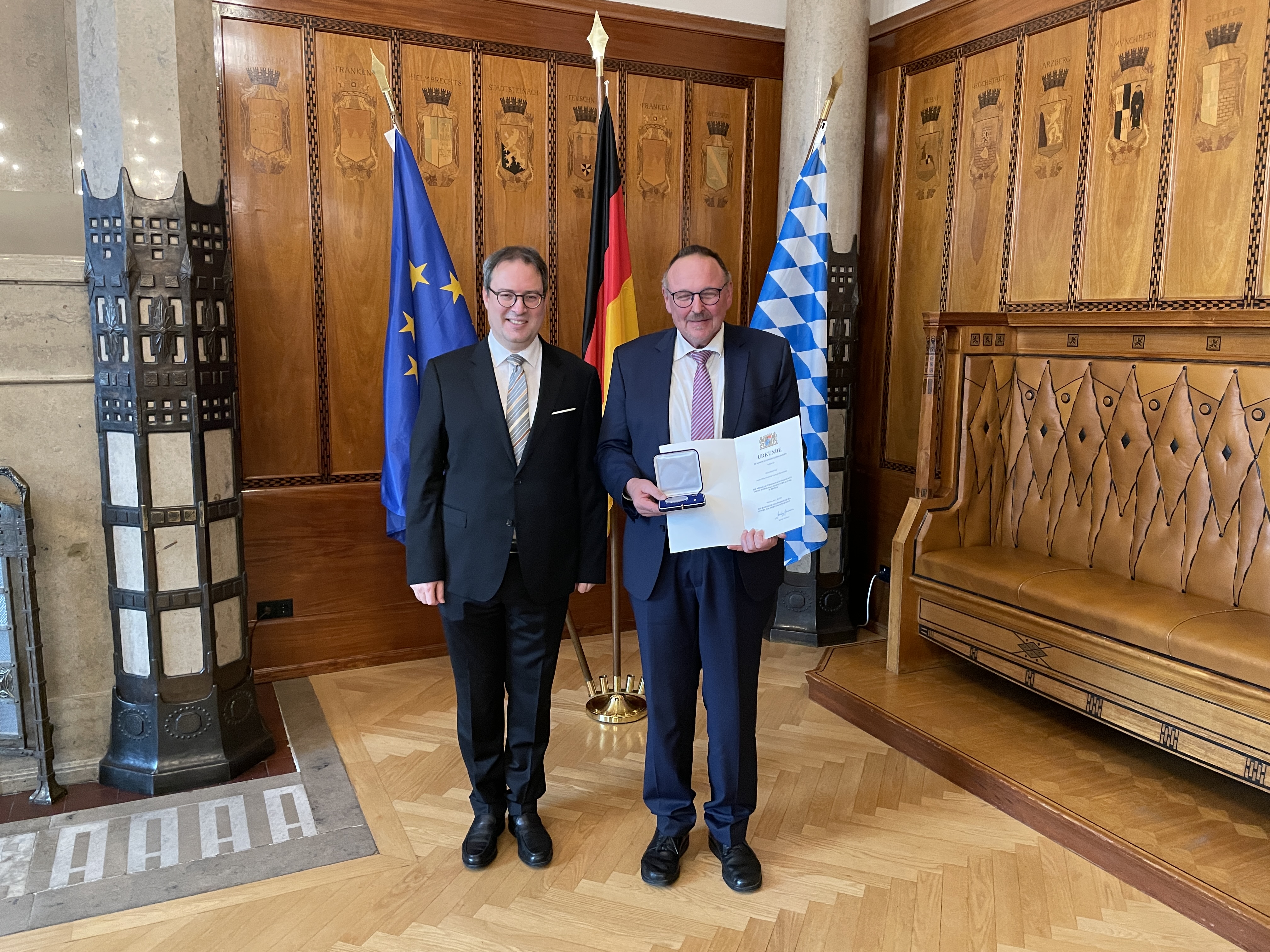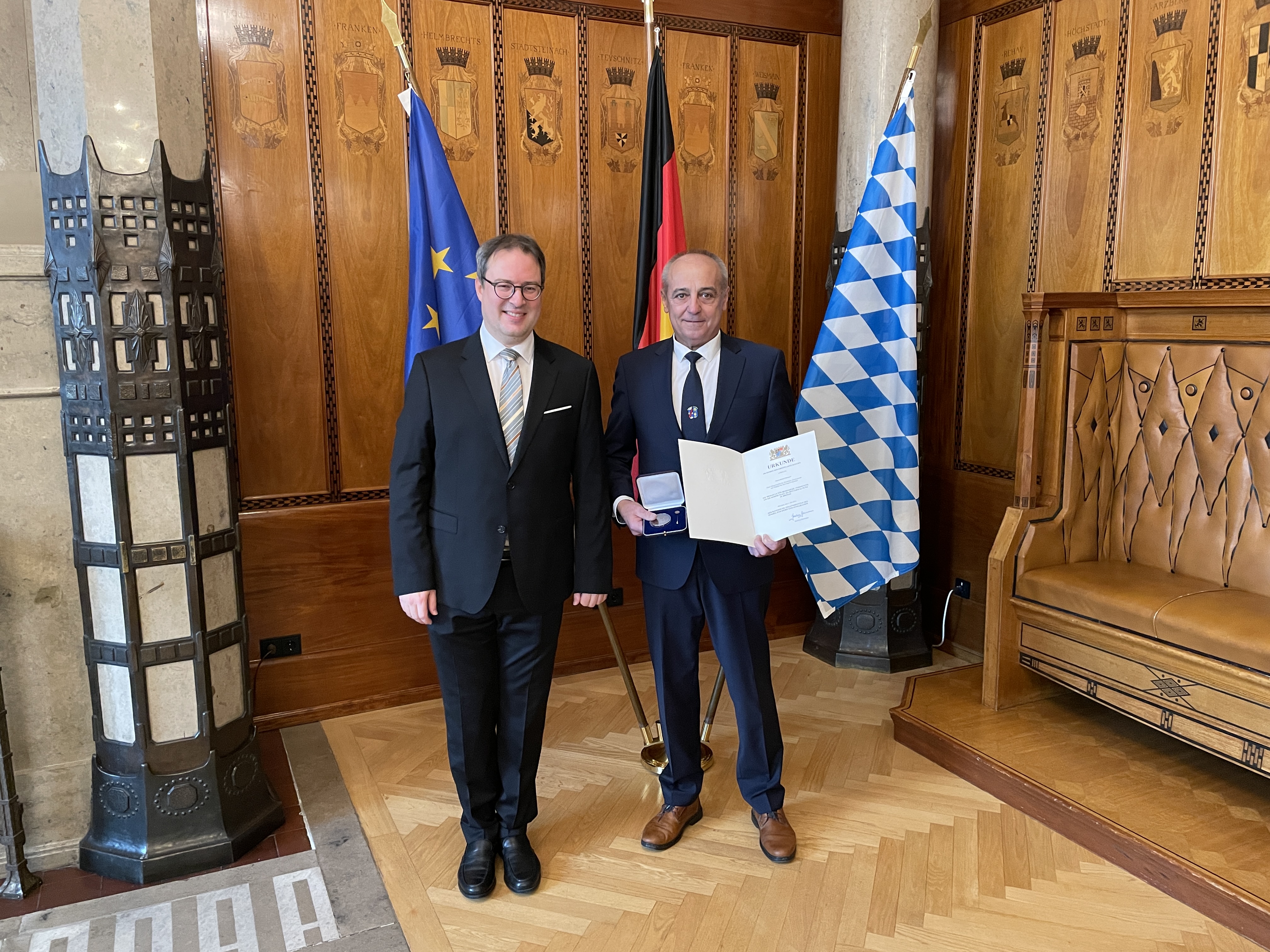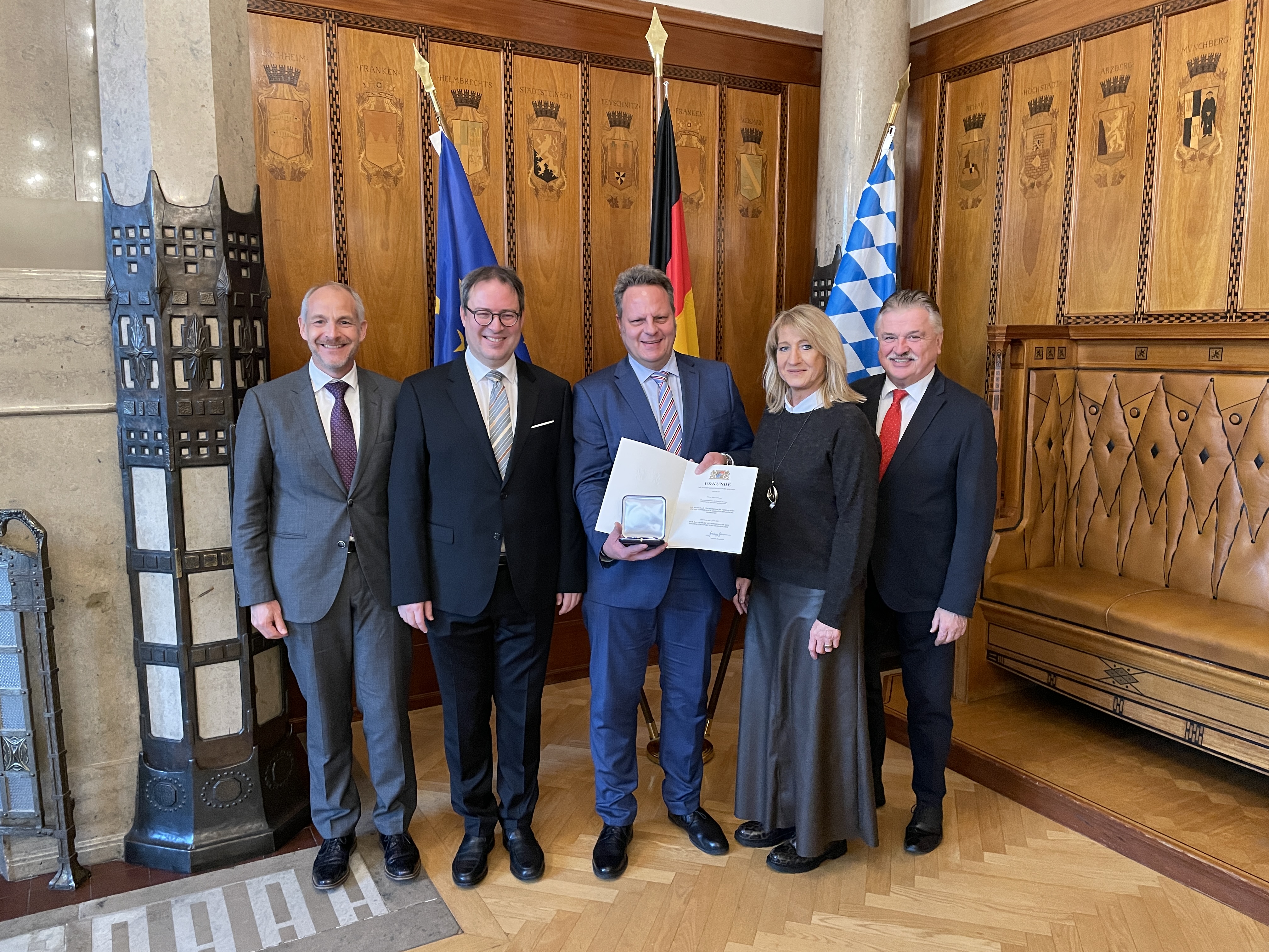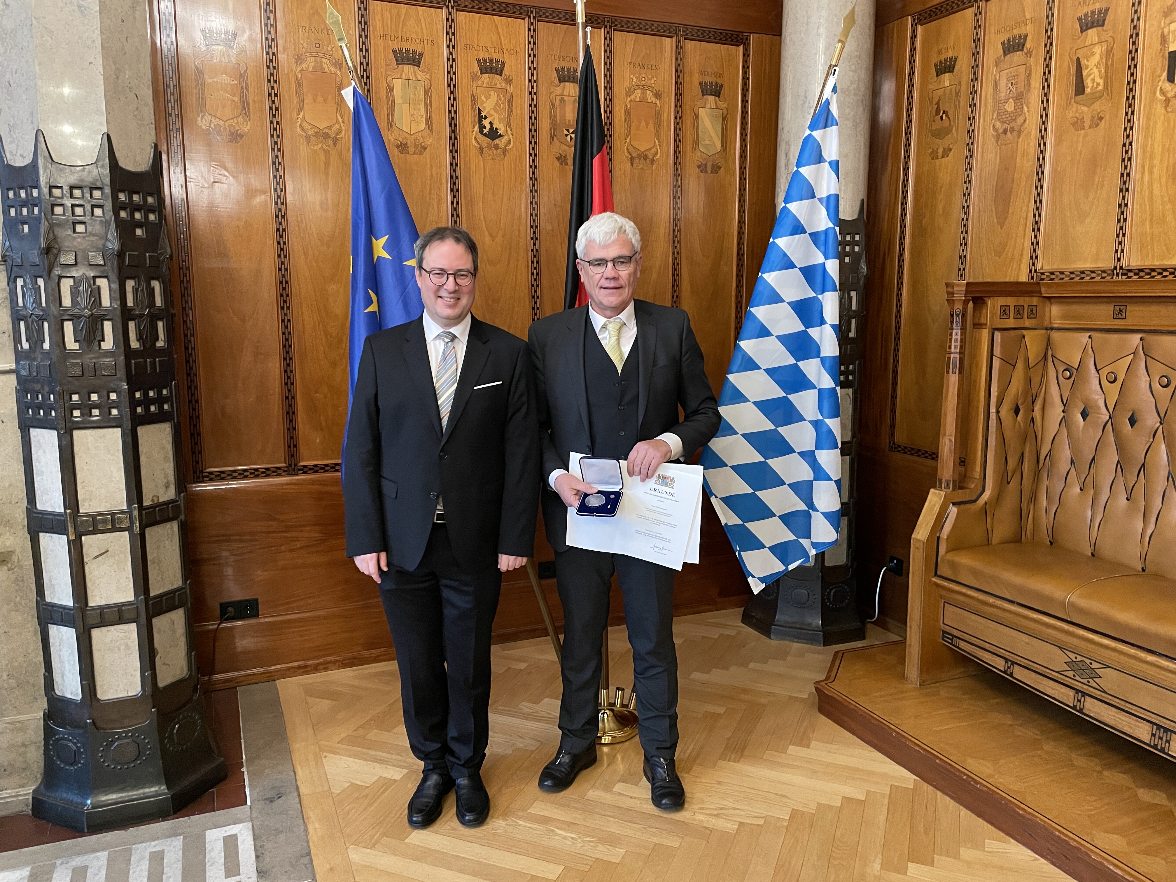 Regierungspräsident Florian Luderschmid hat die vom Bayerischen Staatsminister des Innern, für Sport und Integration verliehene Medaille für besondere Verdienste um die kommunale Selbstverwaltung in Bronze folgenden Persönlichkeiten aus Oberfranken überreicht: