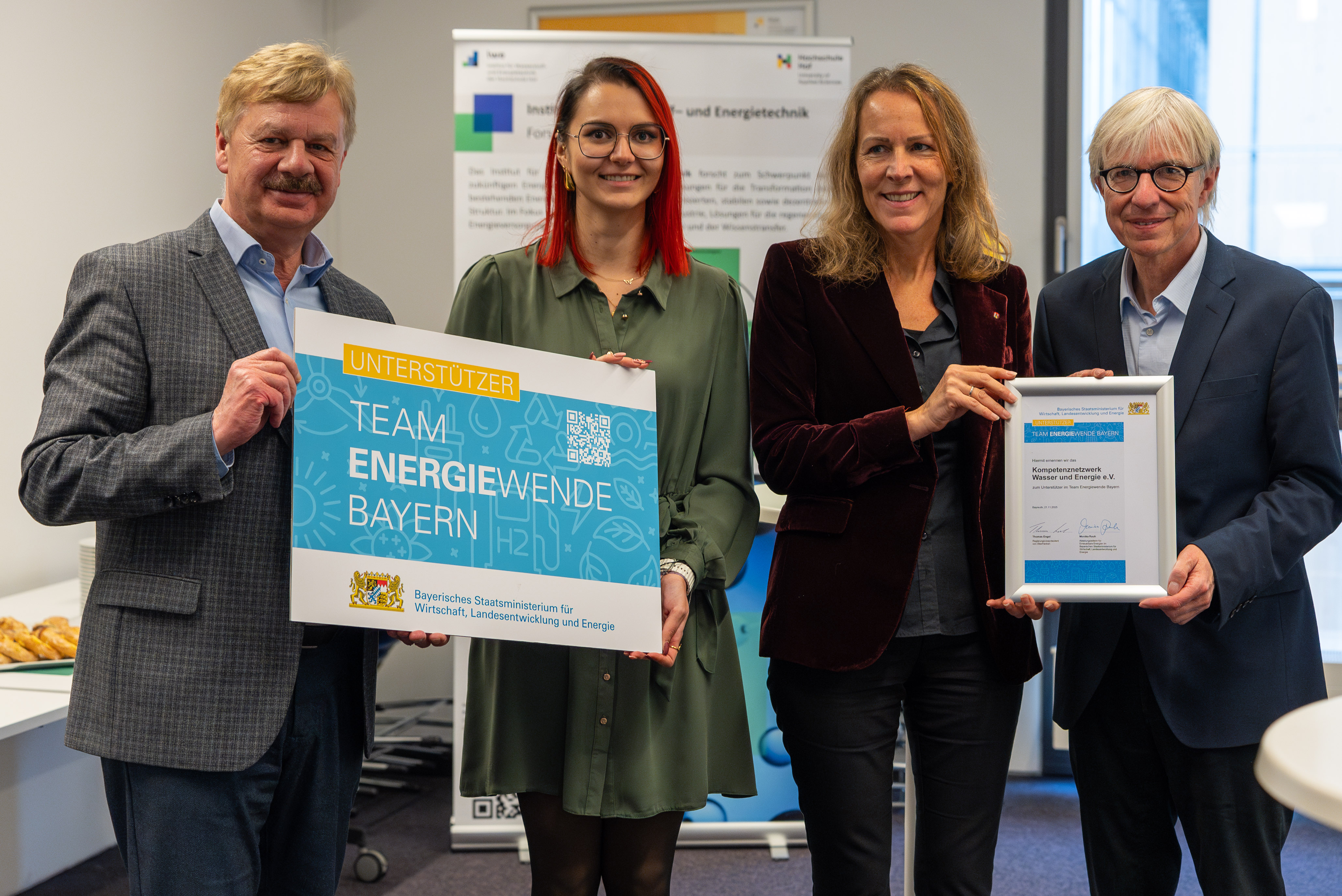 Der Regierungsvizepräsident von Oberfranken Thomas Engel hat das Institut für Wasserstoff- und Energietechnik (iwe) an der Hochschule Hof sowie das Kompetenznetzwerk Wasser und Energie e. V. zu offiziellen Unterstützern der bayerischen Initiative „Team Energiewende Bayern“ ernannt.